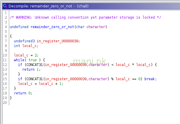 remainder_zero_or_not : in this function calculations are performed on value of each character provided as input