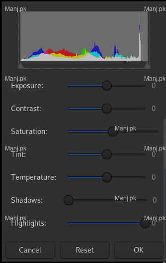 lets open it with a photo editing software with feature to change shadows and highlight curves, I am using Shotwell for this.