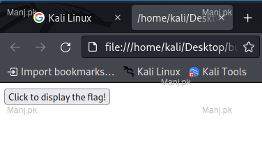 lets save this code inside a .html file and open it by opening the file in browser we can see a button saying “Click to display the flag!”