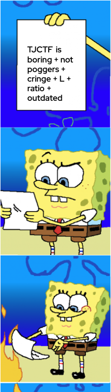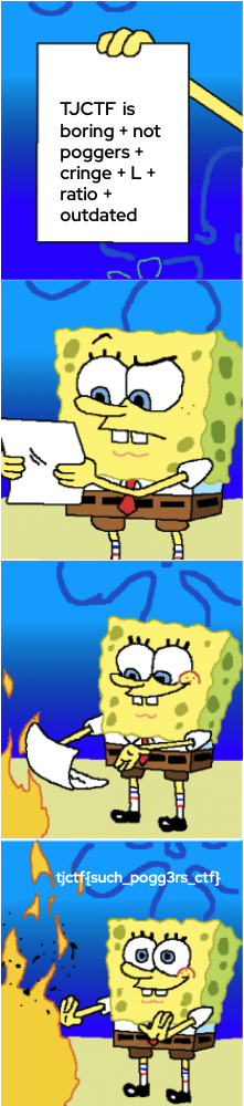 Challenge Discription: TJCTF is really cool and spongebob thinks so too. So cool in fact...wait a minute, isn't the meme usually 4 squares???